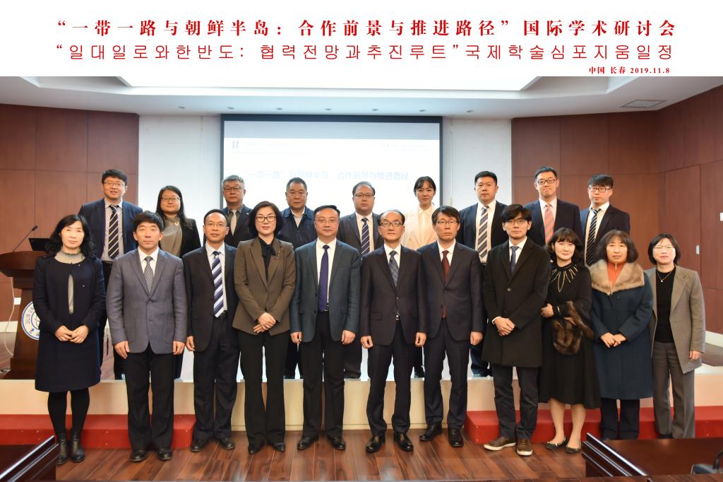 On November 8, 2019, the Northeast Asian Research Center, the Northeast Asian Studies College, and Korea Institute for National Unification jointly organized an international academic conference on the theme of “Belt and Road and the Korean Peninsula: Prospects and Promotion Paths for Cooperation”. More than 20 scholars including seven scholars from Korea Institute for National Unification lead by President Lin Gangze and Vice President Tian Bingkun, and scholars from Jilin University, Shandong University, Liaoning Academy of Social Sciences, Eastern Liaoning University and Dalian University of Foreign Languages attended the meeting.