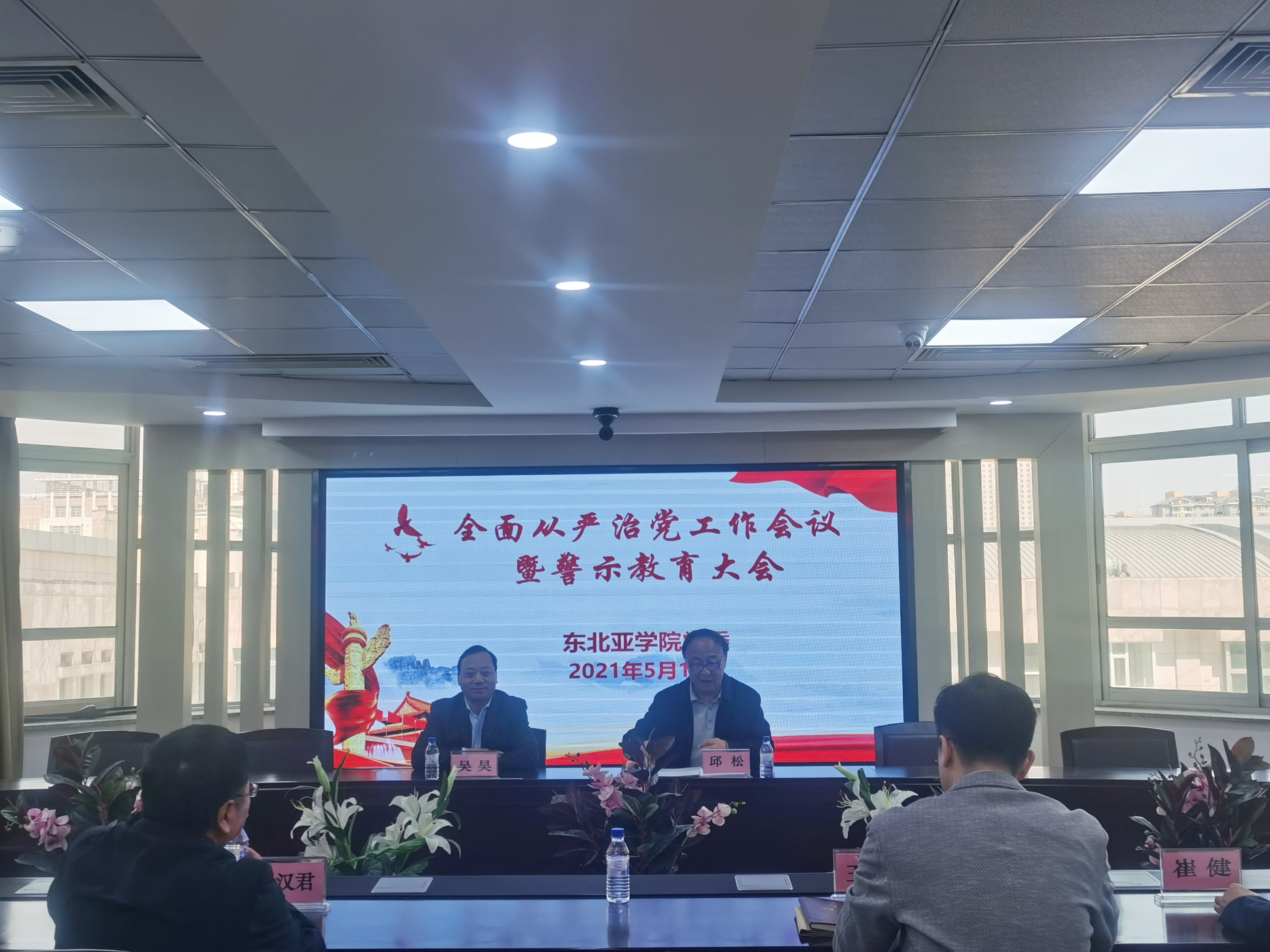 党委召开全面从严治党暨教育警示大会,学院全体领导班子成员、各所所长、副所长、各支部书记、党员师生代表参会,并赴吉林省廉政教育基地集体参观学习。会议由党委书记邱松主持。
