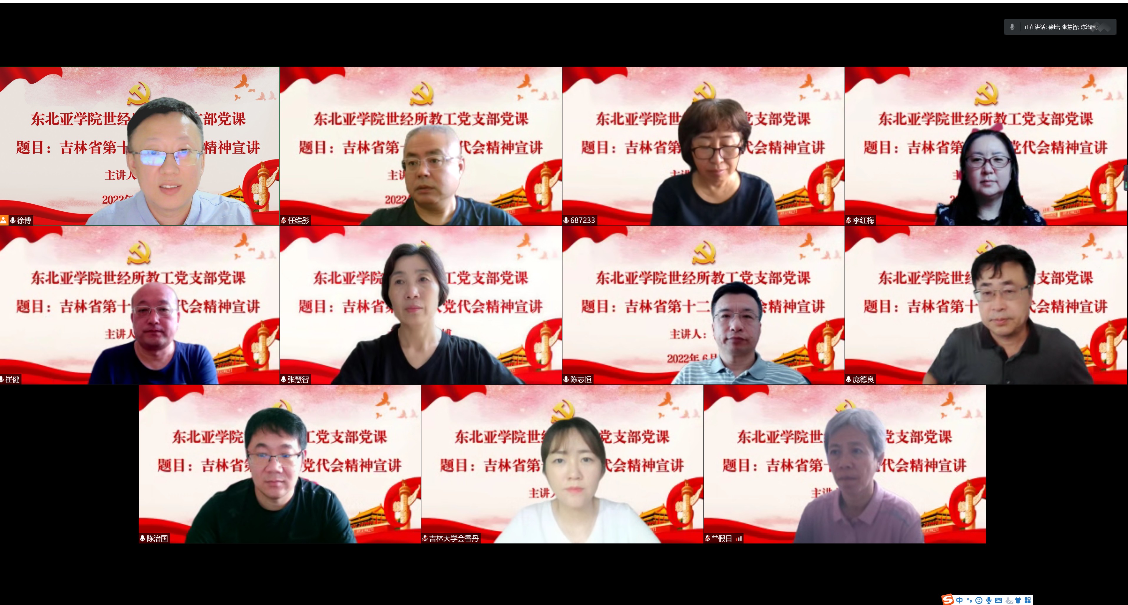 世界经济研究所教工党支部书记徐博副教授以“吉林省第十二次党代会精神宣讲”为题讲党课,带领支部党员学习了吉林省第十二次党代会精神,号召大家切实把思想和行动统一到党代会做出的决策部署上来,立足本职岗位,为加快吉林省全面振兴全方位振兴而不懈奋斗。