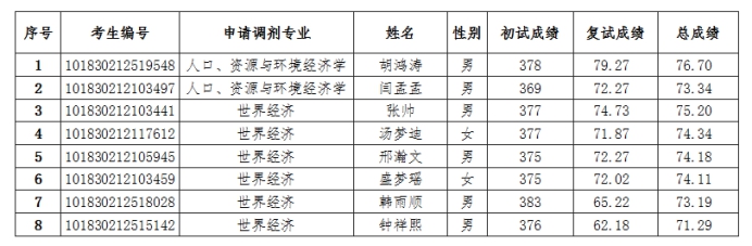 我院于2020年527日开展了调剂复试并确定了拟录取名单(第二批)。因拟录取考生邢瀚文决定调剂到其他院校,我院世界经济专业(020105)出现调剂缺额1人,根据教育部及Ohentai 相关文件要求,决定在参加我院527日调剂复试且成绩合格的考生中择优录取。现再次公布复试成绩及最终拟录取名单(第二批)。