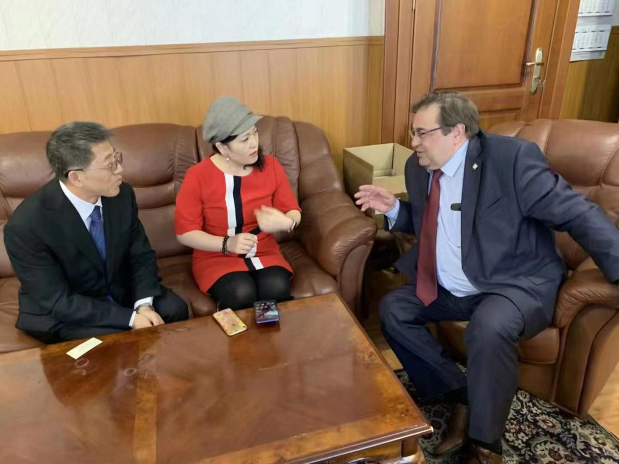 张广翔教授、李牧群老师与俄罗斯科学院俄国史研究所所长Ю.А.彼得罗夫教授讨论学术问题
