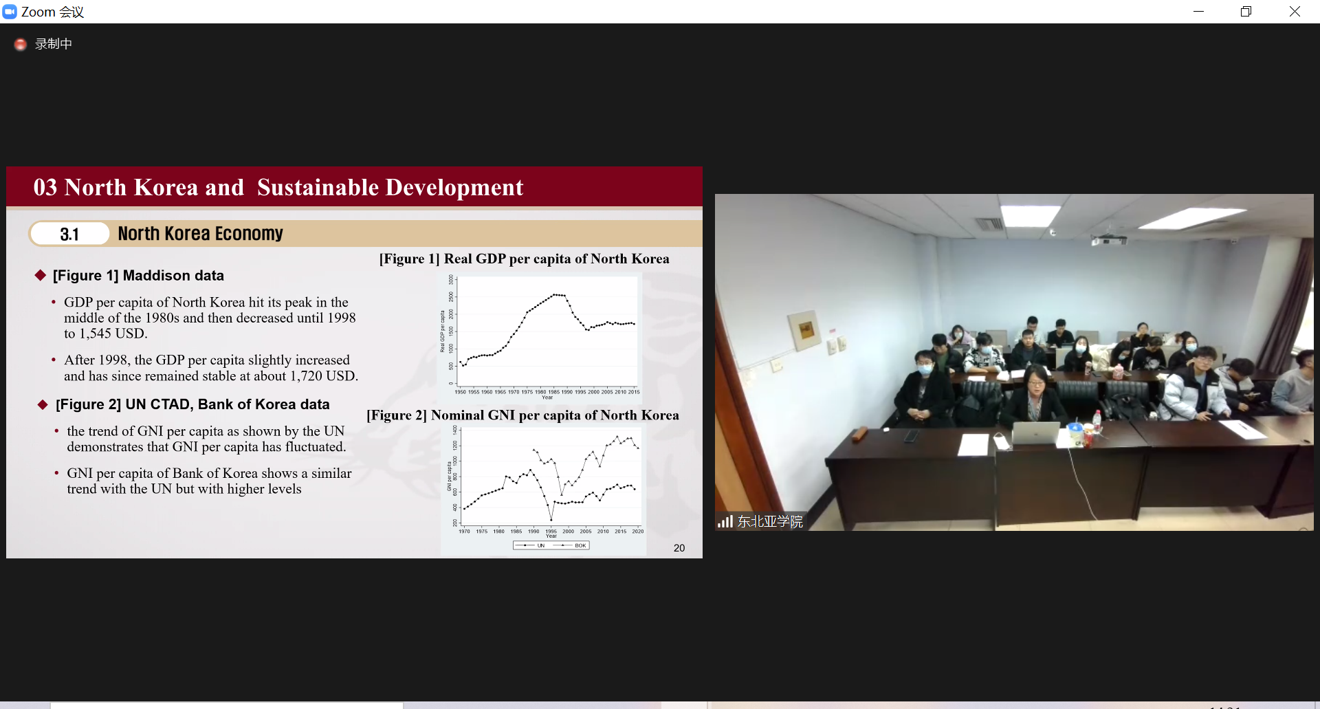 讲座第一部分姜教授介绍了经济改革的相关定义、概念与范畴,随后介绍了不同国家改革的方式与绩效,并提出假设前提,如果朝鲜改革开放,未来将会如何加入到东北亚地区的经济合作中来。第二部分姜教授对朝鲜的经济改革步骤进行了预判。最后姜教授结合联合国的可持续发展指标,对朝鲜可持续发展目标与完成度进行了评估。