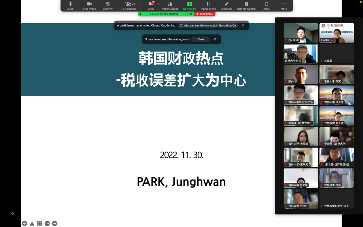 2022年11月30日,“东北亚国别与区域研究高端讲坛”之“韩国的国税收入和财政健全性热点”在Ohentai