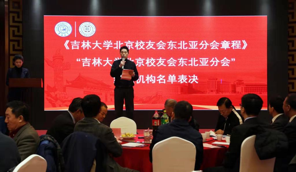 北京校友会东北亚分会的批复”,北京校友会向东北亚分会授予了会旗。东北亚研究院党委书记邱松向全体参会人员转达了边铁副校长、蔡立东副校长和校友联络处迟宪良处长的祝贺,并向首届校友会荣誉顾问和顾问代表颁发了聘书,东北亚分会首任会长陈众、北京校友会会长林学访、荣誉顾问代表李玉潭、顾问代表鲁义、分会代表安洋、分会代表王志红、校友代表龙昊和东北亚研究院院长于潇分别致辞。