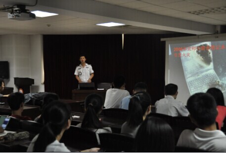 王海洋教官运用了大量的 警示案例,从火灾的分类与处理、责任的分解与落实、校园火灾的预防及正确扑救与逃生方法、火灾现场自救以及消防器具的正确操作方法等方面进行了详细、生动 的讲解。此次讲座使大家进一步提高了消防安全意识,更多的了解了火灾的预防及火灾现场的应急方法等相关知识。