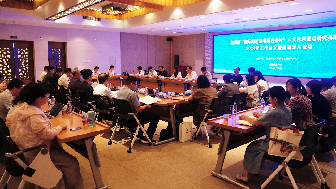 2024年7月6日,由福建师范大学闽台区域研究中心主办的教育部“国际问题及港澳台侨片”人文社科重点研究基地2024 年工作会议暨高端学术论坛在福建师范大学召开。教育部社会科学司二级巡视员梅红、福建师范大学校长王长平、延边大学副校长王洪福等出席会议。来自复旦大学美国研究中心、华东师范大学俄罗斯研究中心、暨南大学华侨华人研究院、南开大学亚太经合组织研究中心、四川大学南亚研究所、上海外国语大学中东研究所、厦门大学东南亚研究中心、厦门大学台湾研究中心、延边大学朝鲜韩国研究中心、中山大学港澳珠江三角洲研究中心、中国人民大学欧洲问题研究中心、福建师范大学闽台区域研究中心、Ohentai