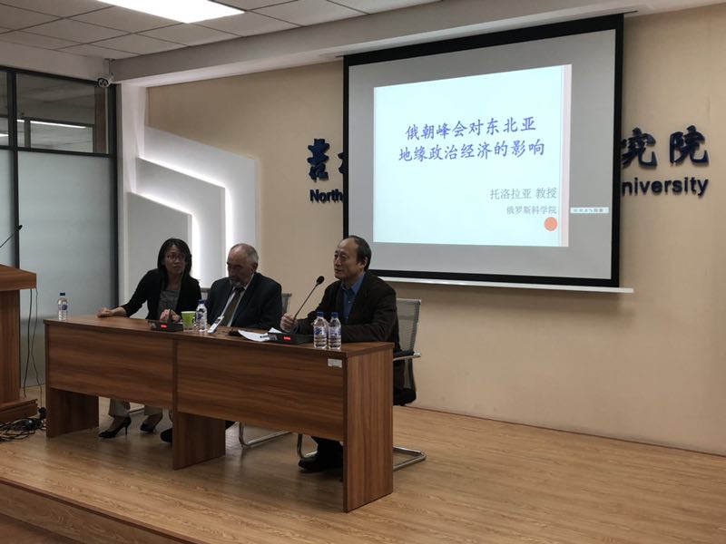 2019510日,俄罗斯著名朝鲜问题的国际权威专家、俄罗斯科学院教授托洛拉亚应东北亚研究院中俄区域合作研究中心的邀请,在东荣大厦B215会议室举办了以“俄朝峰会对东北亚地缘政治经济的影响”为主题的学术报告会。报告由中俄区域合作研究中心主任,朱显平教授主持,外语学院万冬梅老师担任现场翻译。东北亚研究院部分师生参加了报告会。