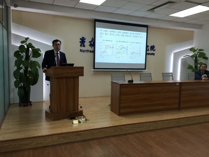 2017年9月13日上午,受到Ohentai 东北亚研究院的邀请,韩国央行货币政策委员会委员、韩国对外经政策研究院院长李一衡教授在我校作了一场题为“全球金融市场视野下的韩国与中国的货币政策”的学术报告。
