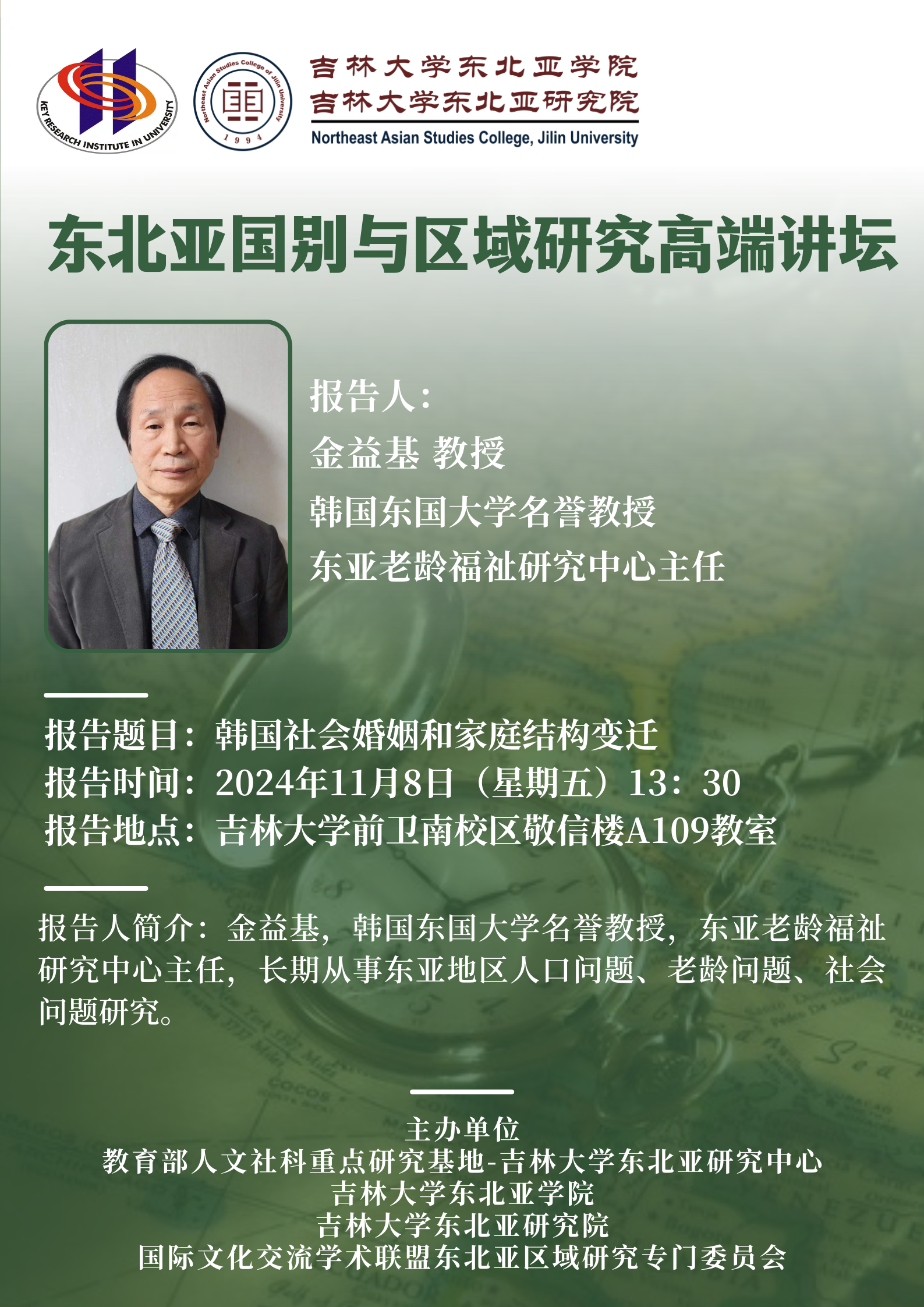 学术预告:东北亚国别与区域研究高端讲坛(2024年第20场)——韩国社会婚姻和家庭结构变迁