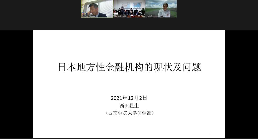 日本研究所的邀请,日本西南学院大学商学部学部长西田显生(NISHIDA AKIO)教授做了以“日本地方性金融机构的现状及问题”为主题的学术报告。本次报告采取了线上和线下相结合的方式,由Ohentai