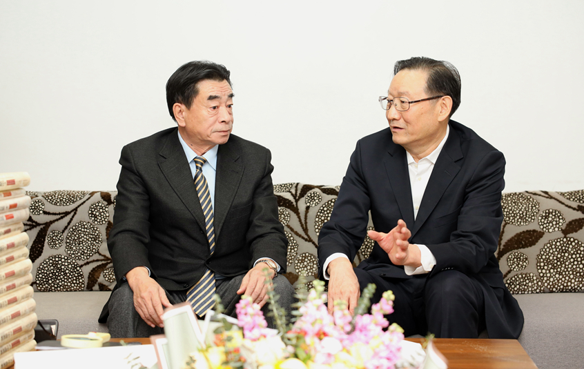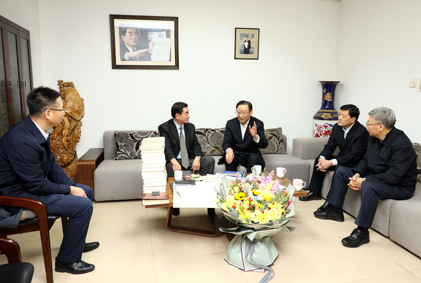 在王胜今办公室,江泽林与王胜今亲切交谈,介绍了过去一年吉林经济社会发展情况,并详细了解王胜今的课题研究内容与重点。江泽林表示,王胜今长期从事东北亚区域经济、长吉图开发开放战略与规划研究,为推动东北亚区域经济发展和吉林省珲春海洋经济发展示范区建设作出了重要贡献。江泽林强调,“支持珲春开展海洋经济合作发展示范”是贯彻落实习近平总书记关于推动形成优势互补高质量发展的区域经济布局和《中共中央国务院关于支持东北地区深化改革创新推动高质量发展的意见》有关要求的重要举措,对加快培育经济增长新动能,推动区域合作,实现南北互动,形成中俄朝等周边国家利益交汇点、深度融入共建“一带一路”北向新通道与“冰上丝绸之路”对接战略支点具有重大意义。江泽林希望王胜今教授和研究团队进一步发挥自身优势和领军作用,加快推进珲春海洋经济合作发展示范引领,全力打造新时代吉林省对外开放合作新高地,为吉林全面振兴全方位振兴作出新的贡献。
